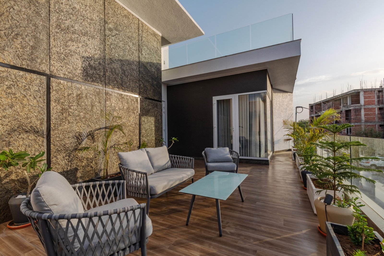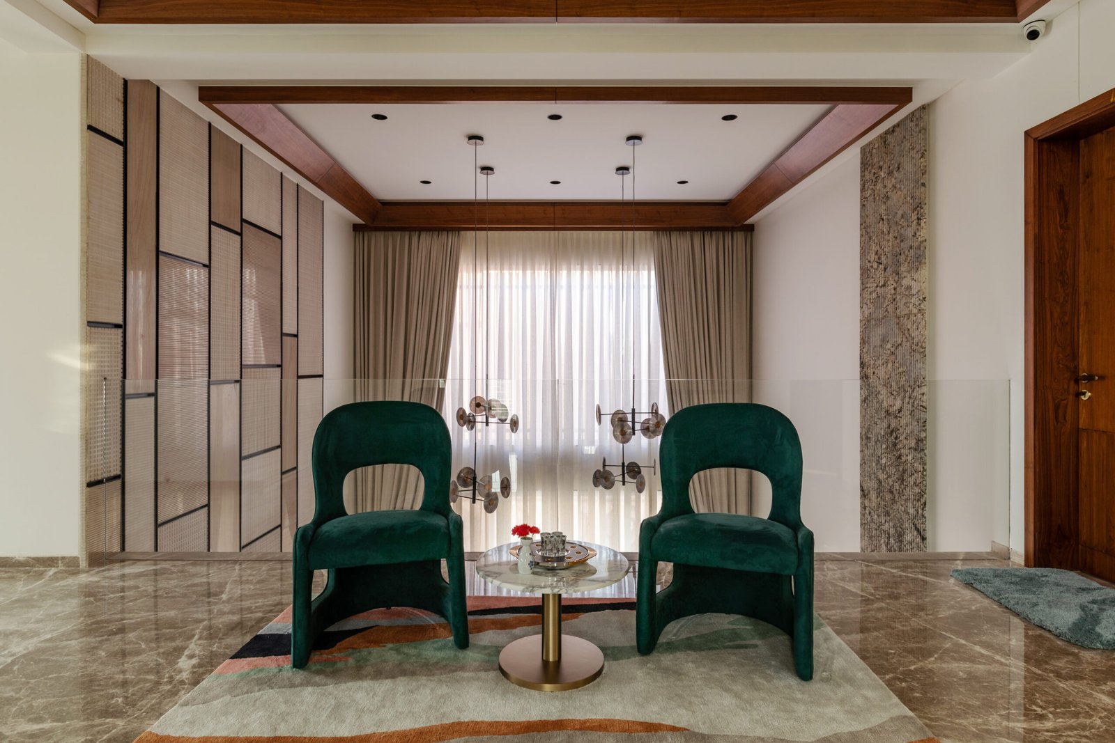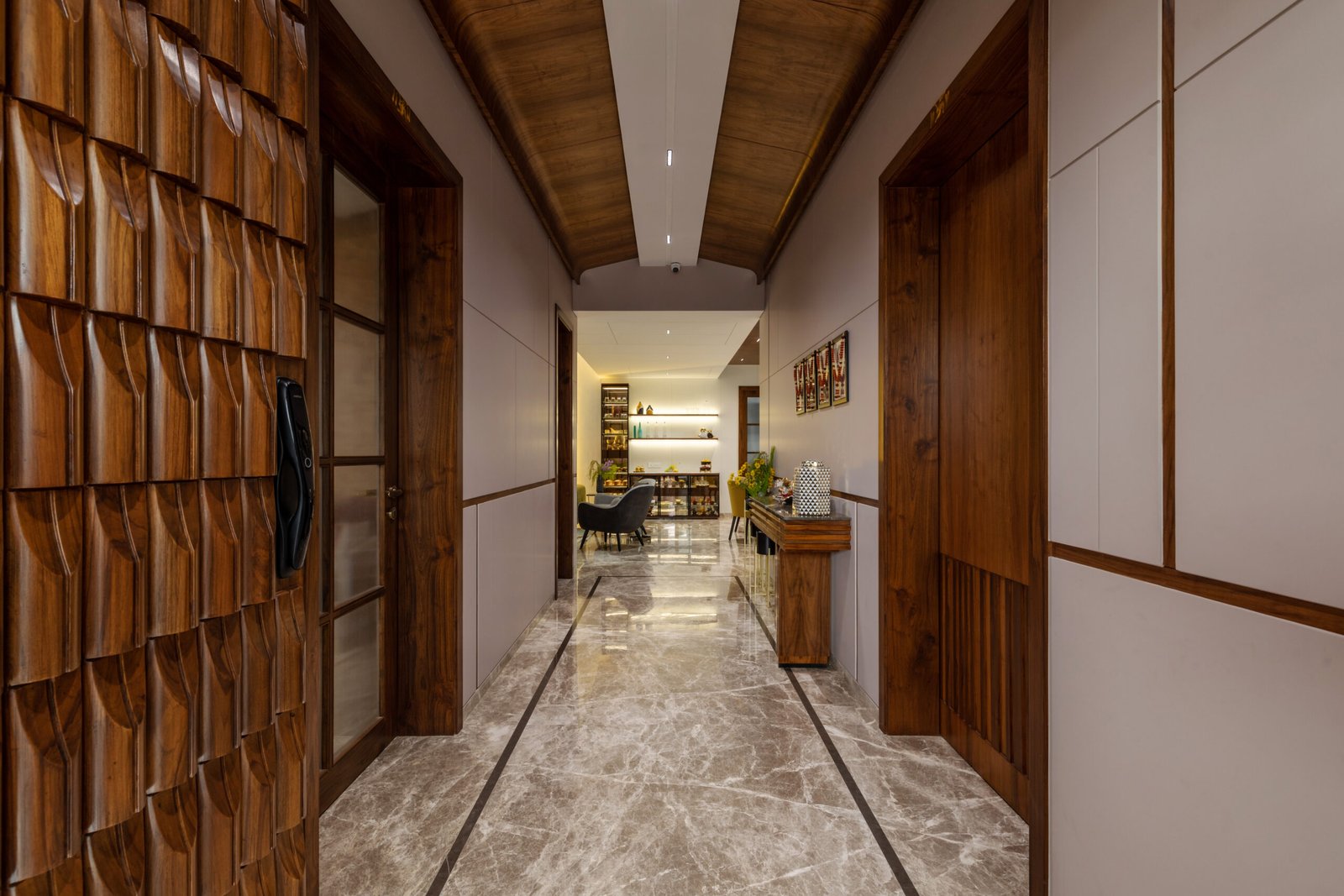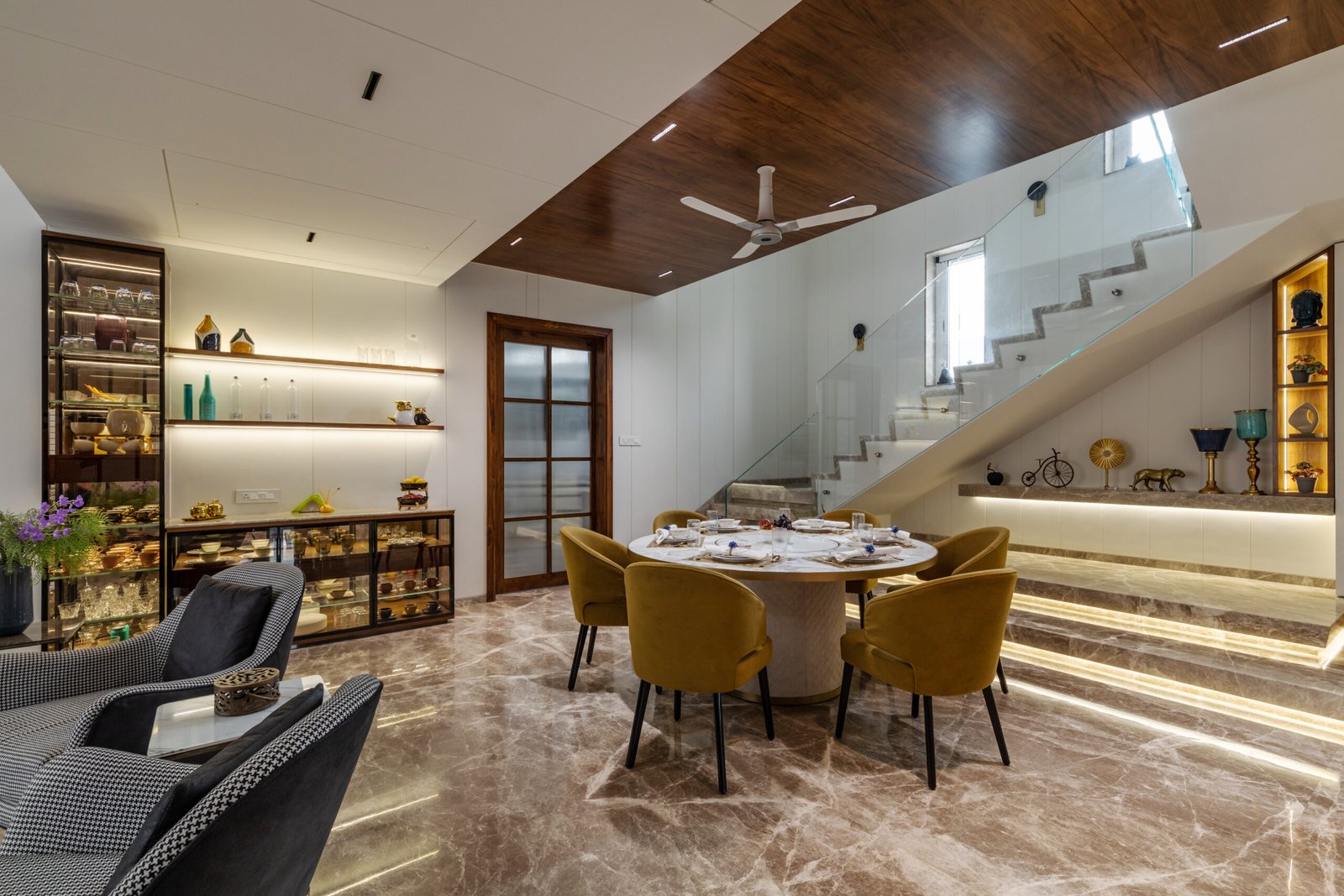 Kamlesh unfolds across 8,000 sq ft as a serene composition of horizontality, shadow play, and refined textures. The architectural language employs muted material palettes, with quartzite marble cladding lending it a sculptural yet grounded quality. Interiors echo the same quiet sophistication devoid of clutter, driven by natural light and meaningful pauses. Every volume is purposefully understated, allowing the house to feel lived-in yet aspirational. It’s a residence where peace becomes the primary luxury.
