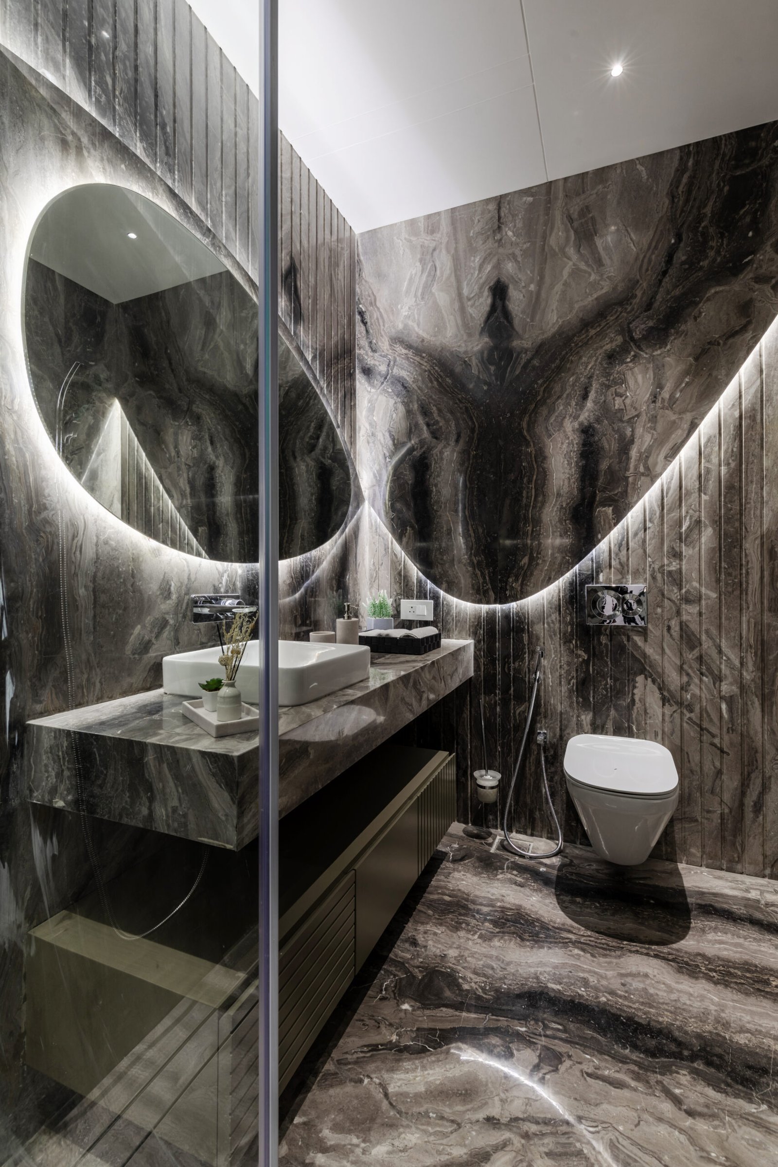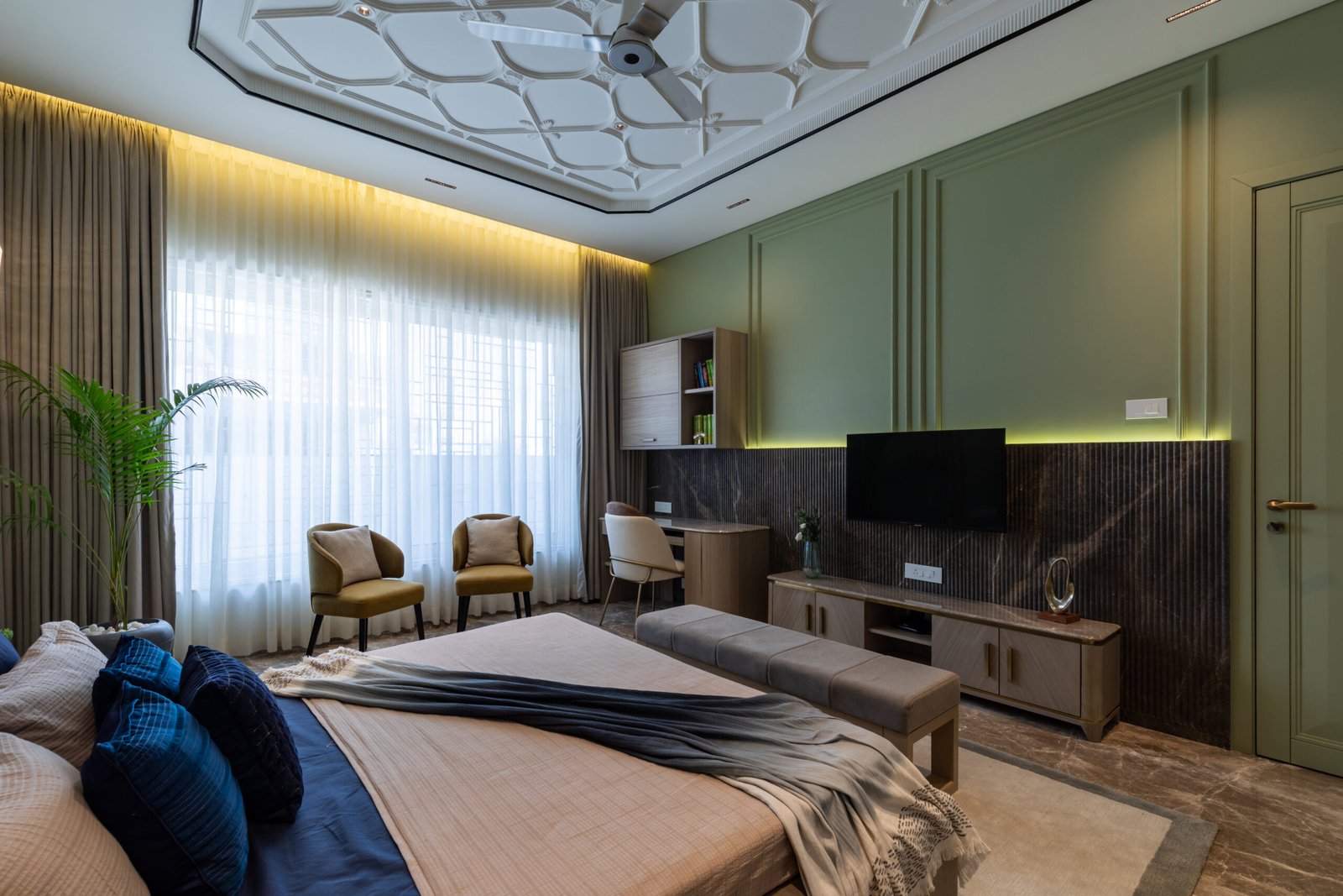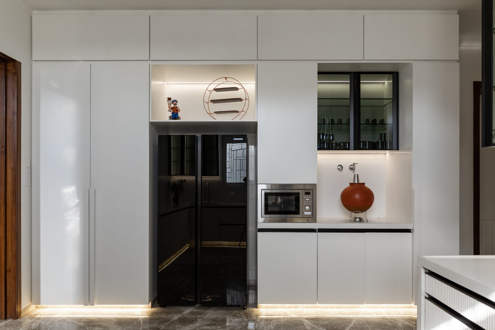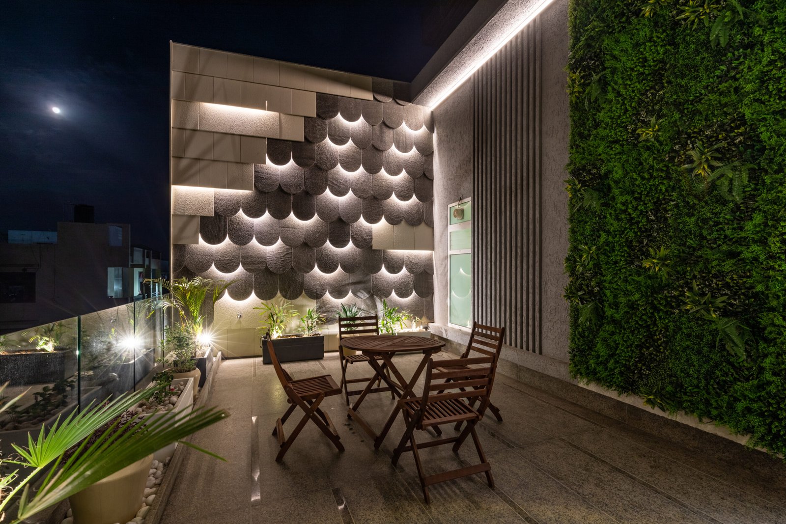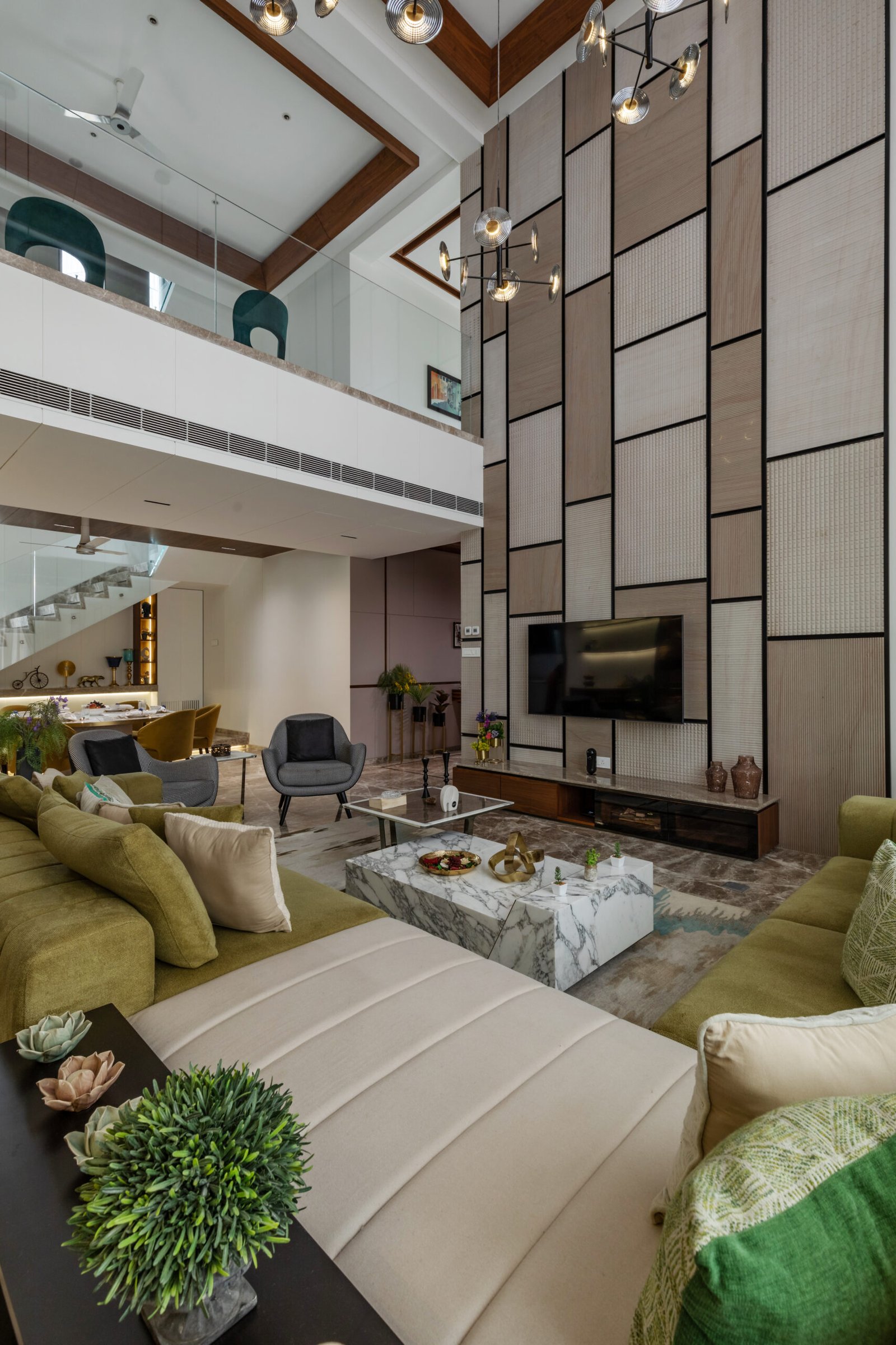 Kamlesh unfolds across 8,000 sq ft as a serene composition of horizontality, shadow play, and refined textures. The architectural language employs muted material palettes, with quartzite marble cladding lending it a sculptural yet grounded quality. Interiors echo the same quiet sophistication devoid of clutter, driven by natural light and meaningful pauses. Every volume is purposefully understated, allowing the house to feel lived-in yet aspirational. It’s a residence where peace becomes the primary luxury.