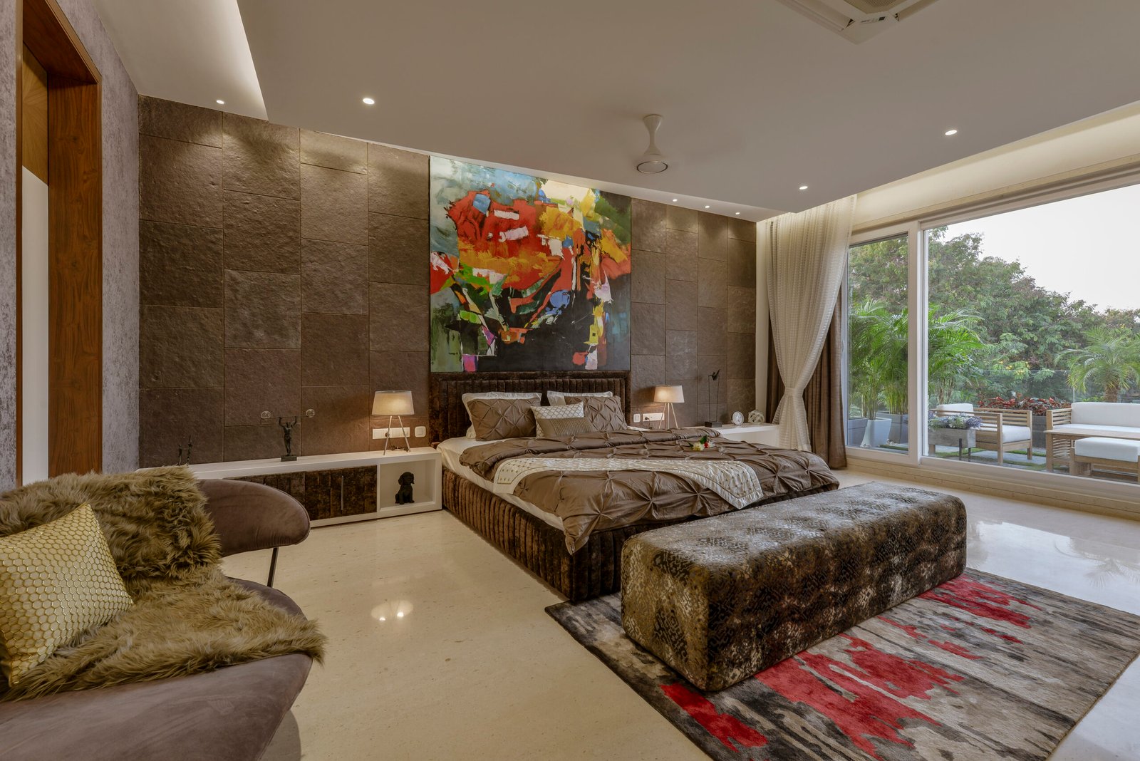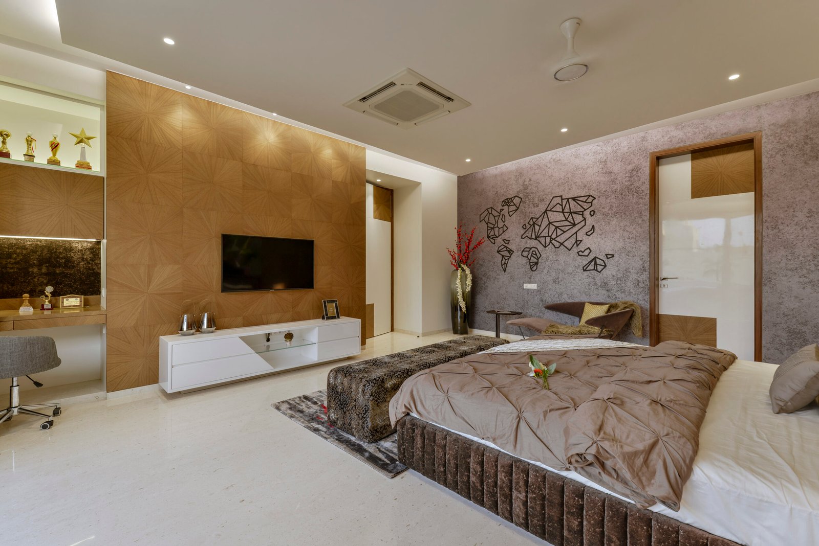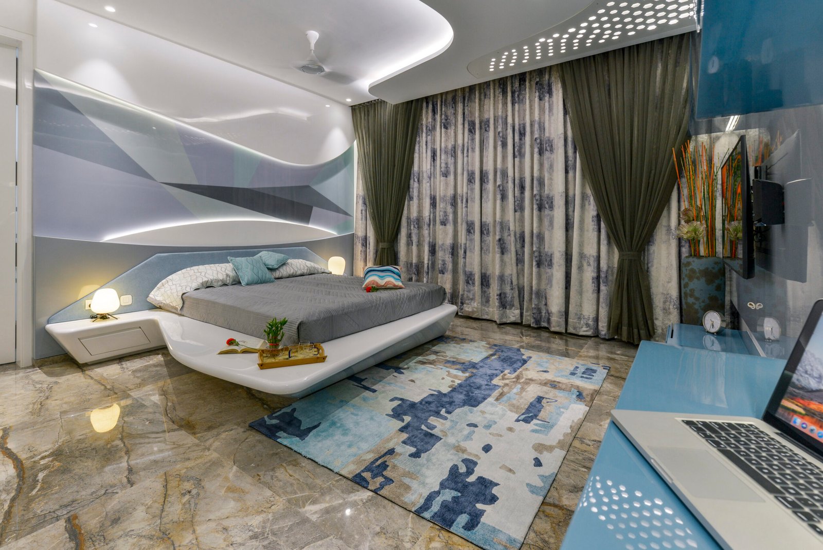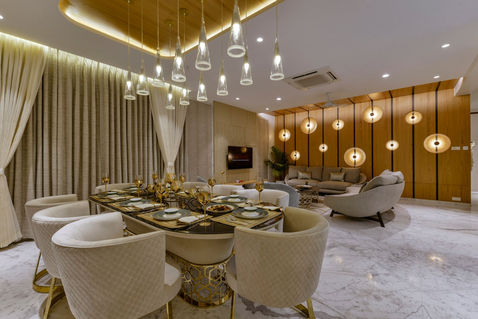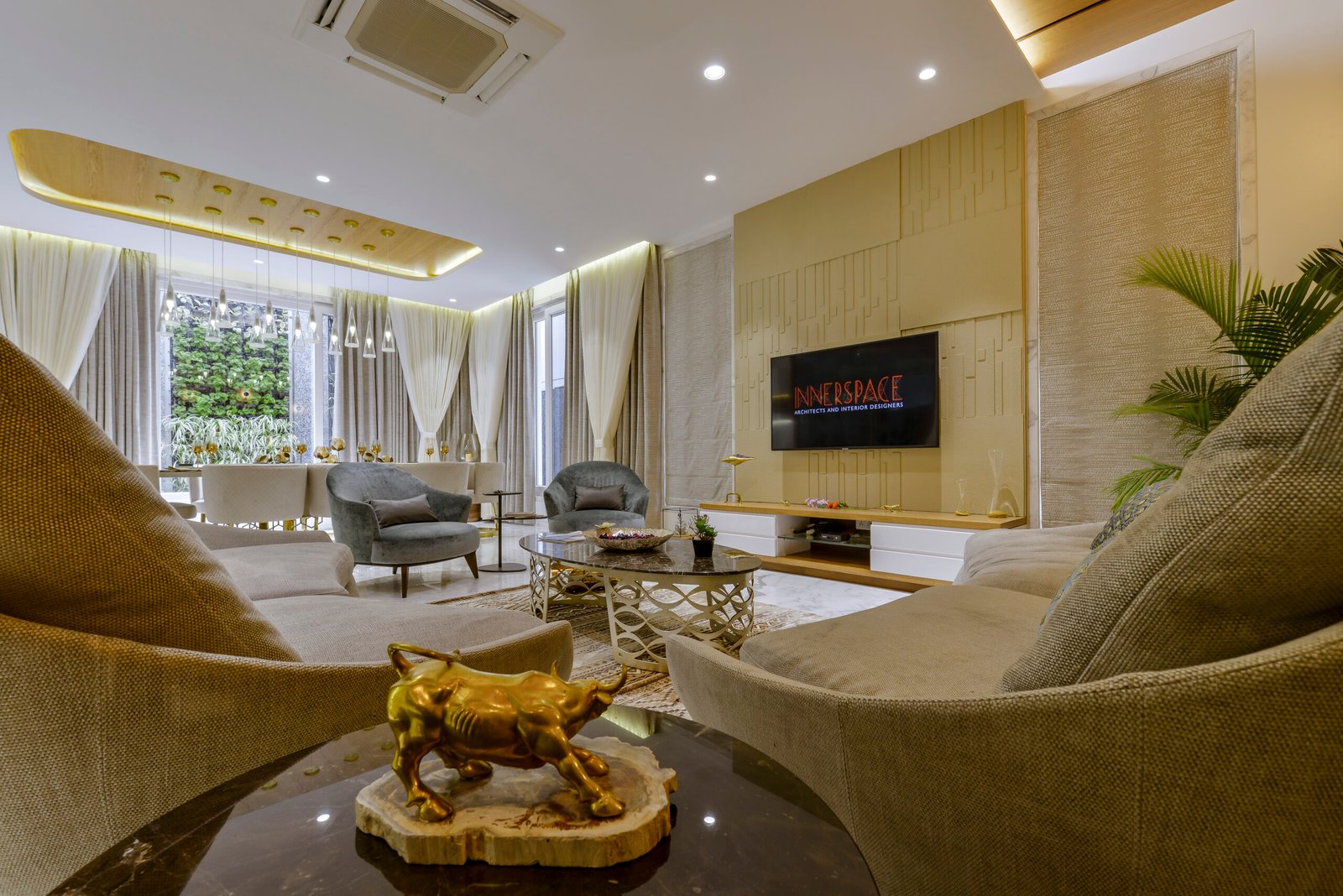 Spanning 7,000 sq ft, Sanskruti stands out with its dramatic fabricated wraparound structure that envelopes the home composed of wooden elements that add warmth and contrast against the expansive travertine stone cladding. A skylight crowns the terrace, filling upper floors with natural light, while the projecting glass corner window of the media room adds architectural tension and visual interest. Internally, the home breaks into a colourful narrative — where lively hues and Italian-imported furniture pieces give each space its own identity. Sanskruti is a bold interplay of structure and soul — where contemporary form, creative detailing, and global taste come together in perfect sync.