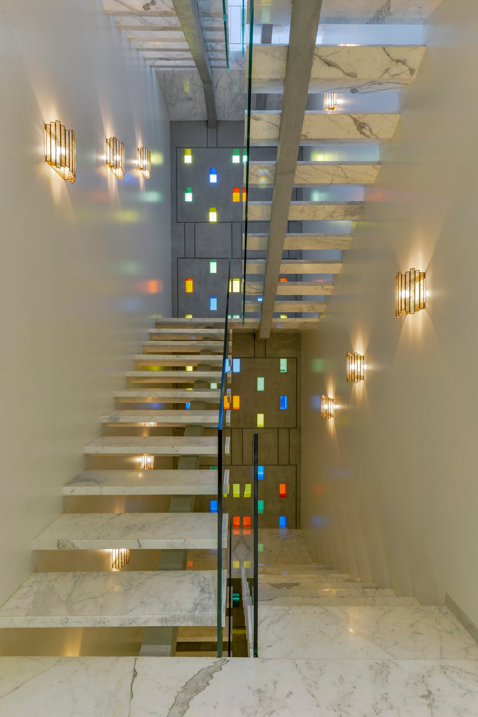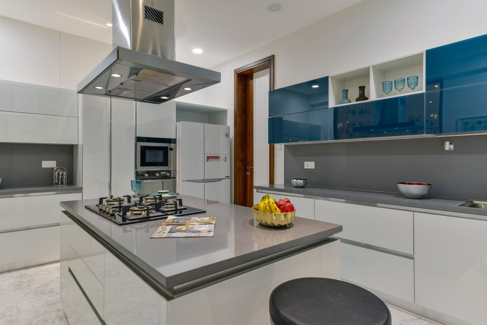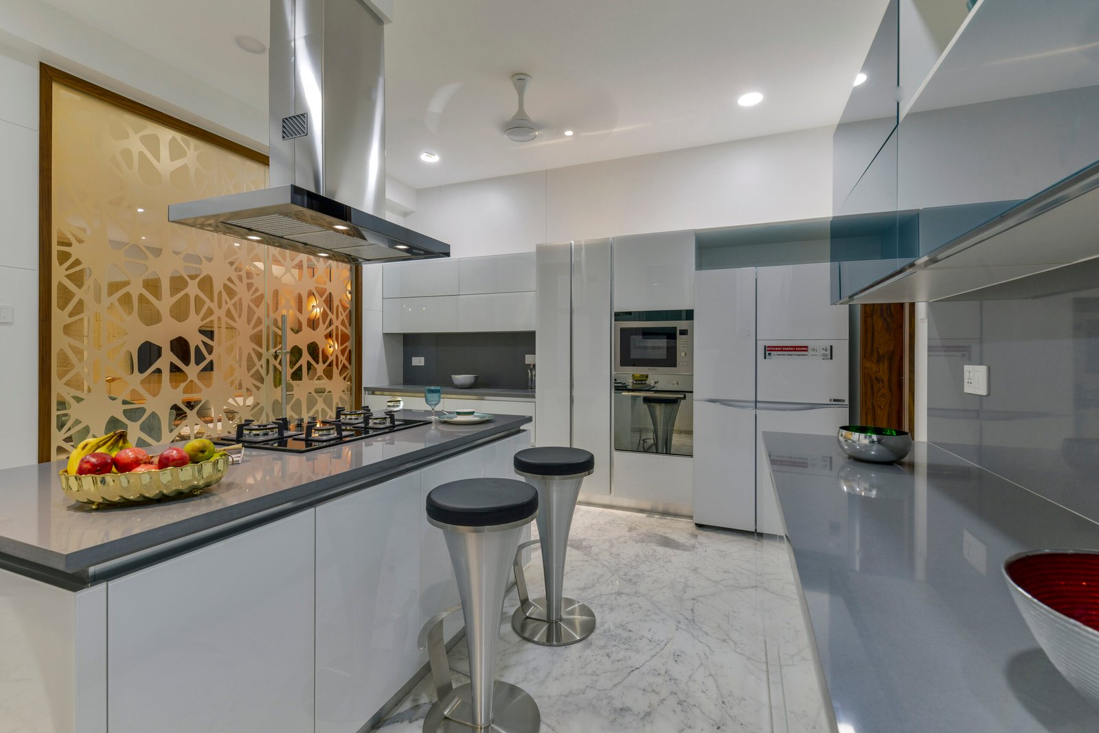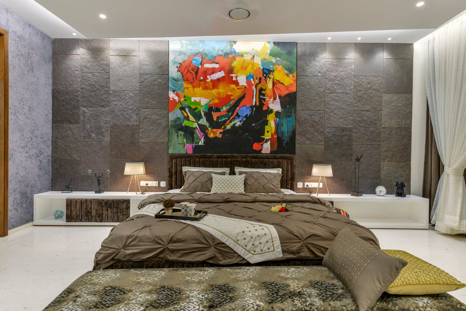 Spanning 7,000 sq ft, Sanskruti stands out with its dramatic fabricated wraparound structure that envelopes the home composed of wooden elements that add warmth and contrast against the expansive travertine stone cladding. A skylight crowns the terrace, filling upper floors with natural light, while the projecting glass corner window of the media room adds architectural tension and visual interest. Internally, the home breaks into a colourful narrative — where lively hues and Italian-imported furniture pieces give each space its own identity. Sanskruti is a bold interplay of structure and soul — where contemporary form, creative detailing, and global taste come together in perfect sync.