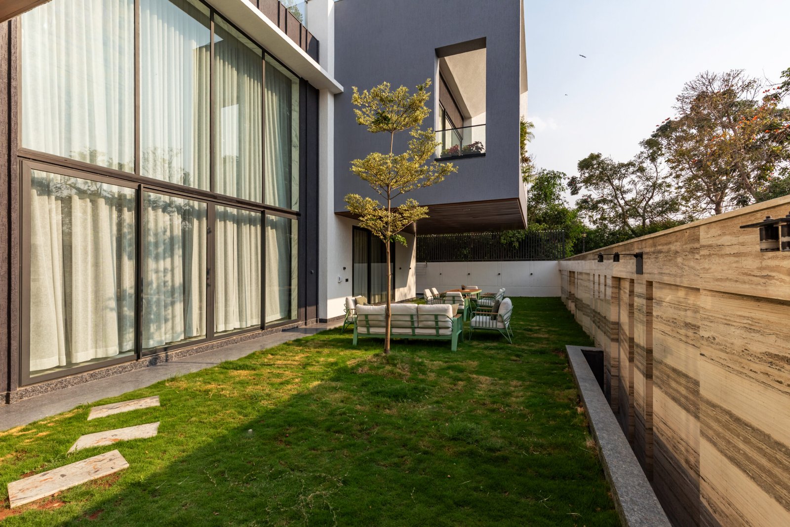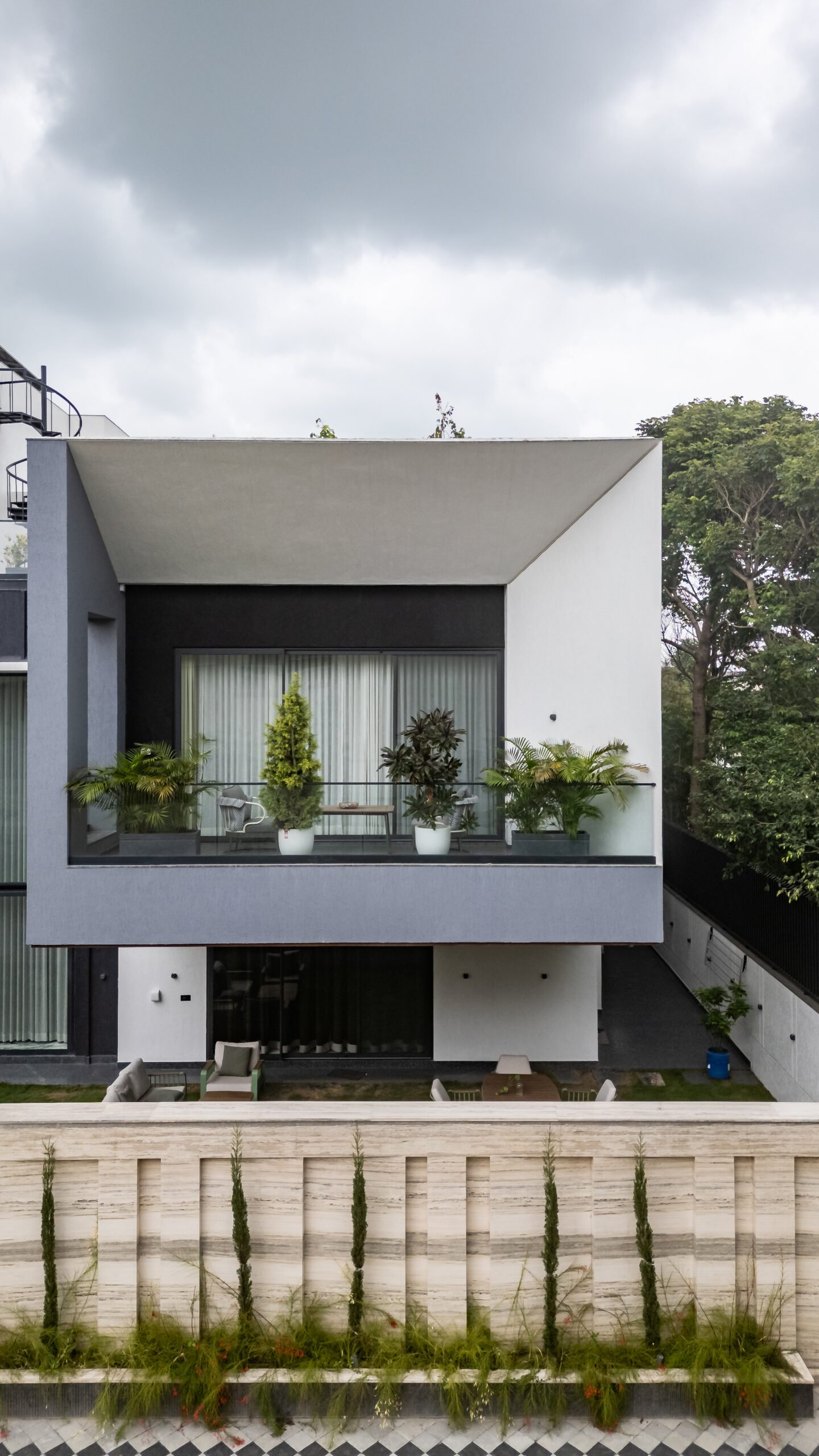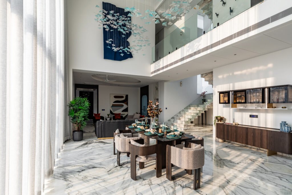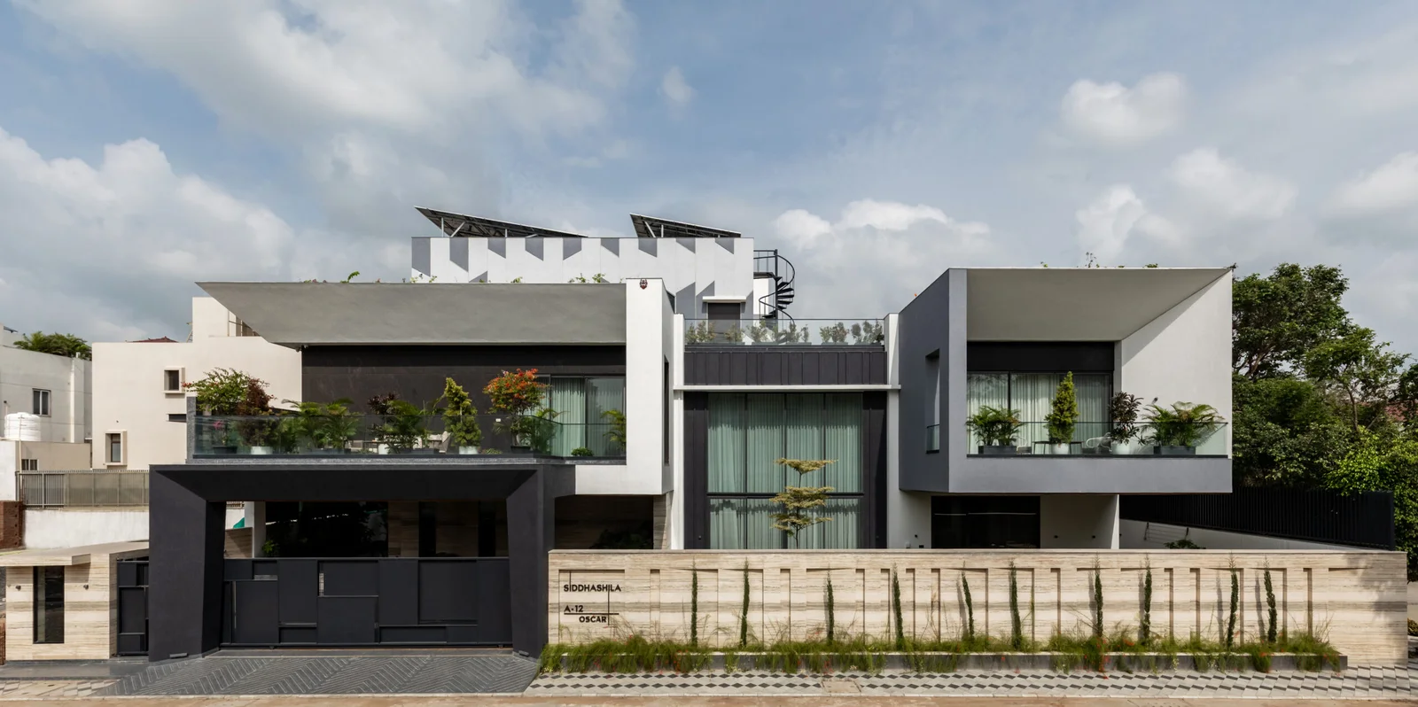 Spread across 13,000 sq ft, Siddhashila is a modern-style bungalow that harmoniously fuses architectural forms with practical living. Geometric shapes such as triangles, rectangles, and squares are intricately woven into the structure from facade articulation to interior planning. The house becomes a living diagram, where form is not just aesthetic but functional. The simplicity of lines, clean volumes, and fluid spatial transitions ensures a minimal yet bold expression. With a design that speaks in shapes and flows in function, Siddhashila is a celebration of architectural logic where beauty lies in clarity, and elegance emerges from thoughtful restraint.