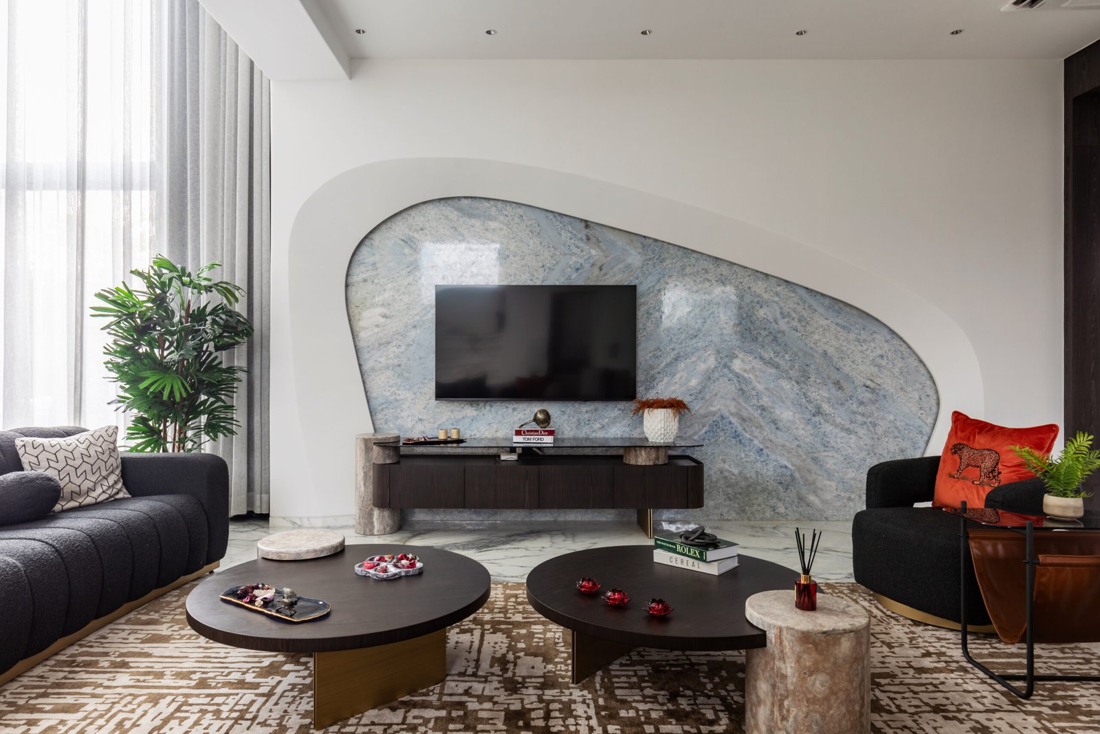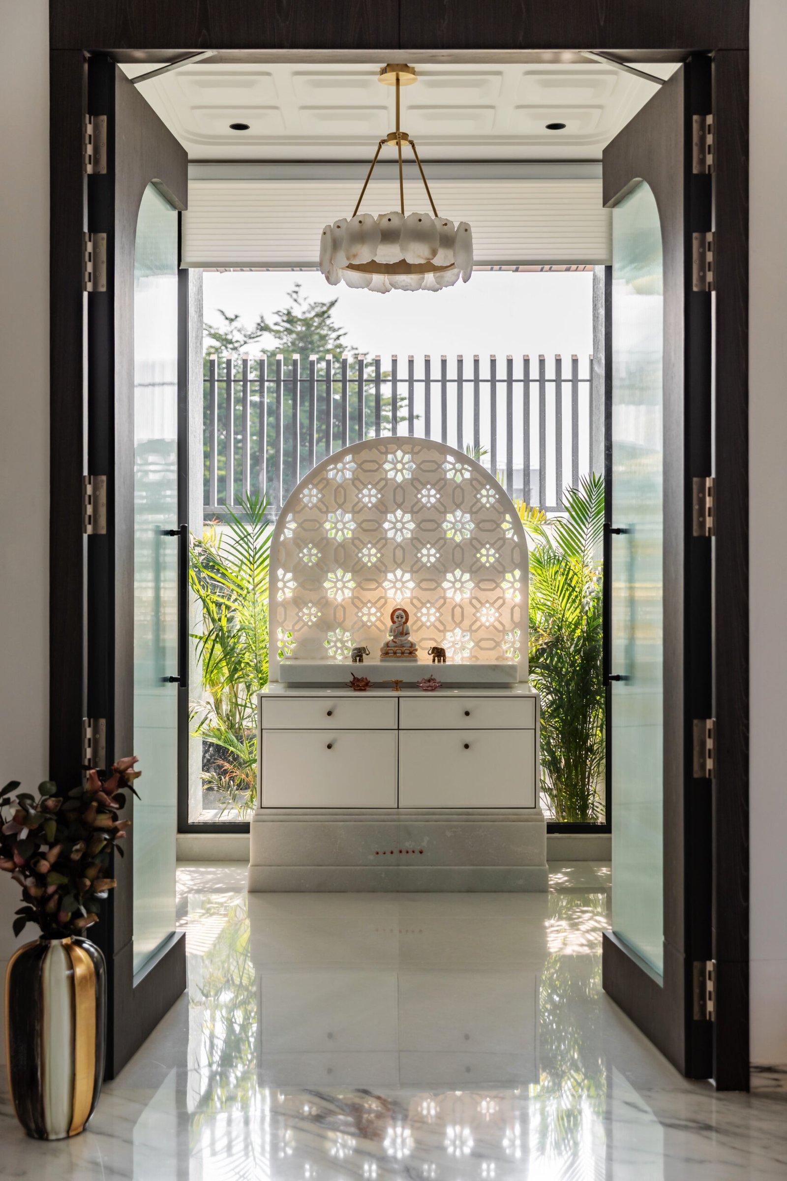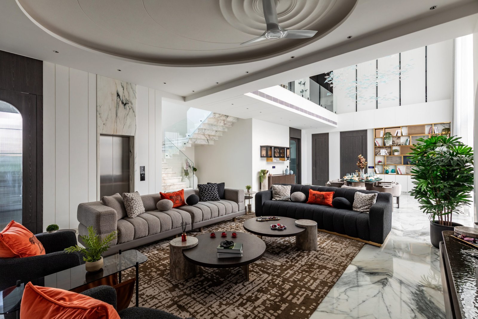 Spread across 13,000 sq ft, Siddhashila is a modern-style bungalow that harmoniously fuses architectural forms with practical living. Geometric shapes such as triangles, rectangles, and squares are intricately woven into the structure from facade articulation to interior planning. The house becomes a living diagram, where form is not just aesthetic but functional. The simplicity of lines, clean volumes, and fluid spatial transitions ensures a minimal yet bold expression. With a design that speaks in shapes and flows in function, Siddhashila is a celebration of architectural logic where beauty lies in clarity, and elegance emerges from thoughtful restraint.
