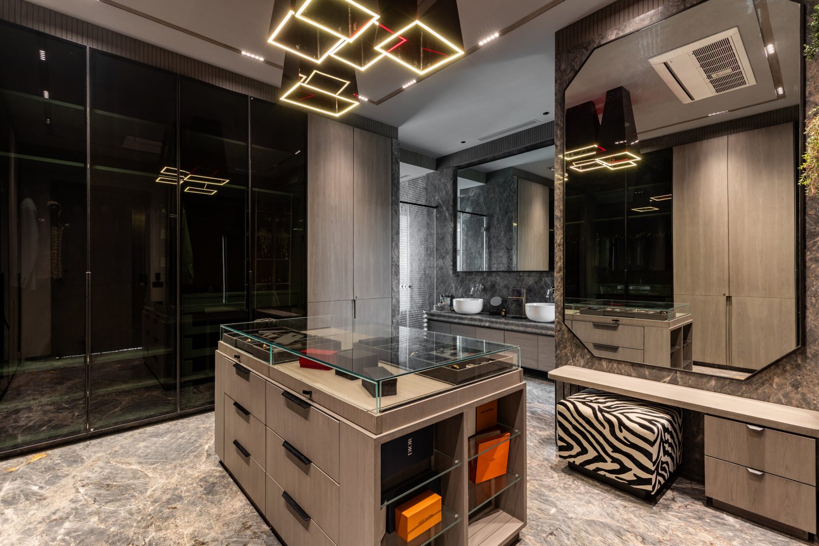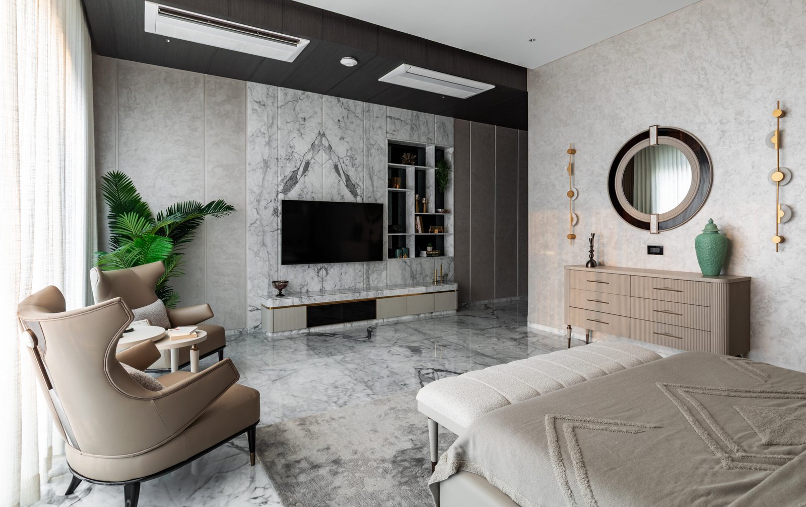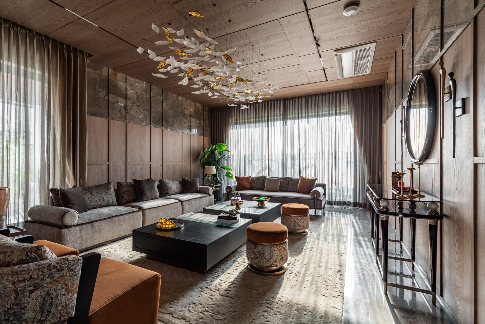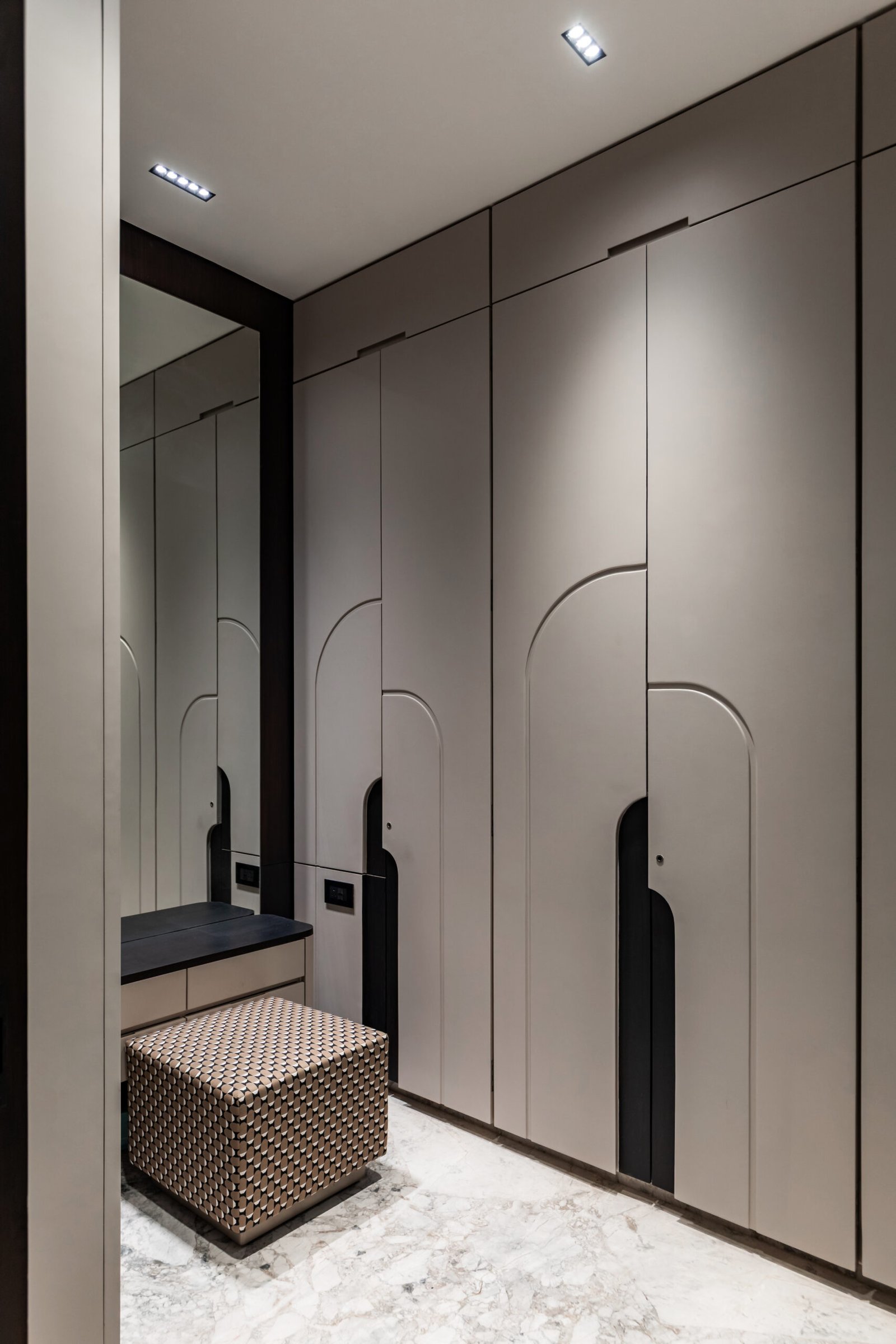 Spread across 13,000 sq ft, Siddhashila is a modern-style bungalow that harmoniously fuses architectural forms with practical living. Geometric shapes such as triangles, rectangles, and squares are intricately woven into the structure from facade articulation to interior planning. The house becomes a living diagram, where form is not just aesthetic but functional. The simplicity of lines, clean volumes, and fluid spatial transitions ensures a minimal yet bold expression. With a design that speaks in shapes and flows in function, Siddhashila is a celebration of architectural logic where beauty lies in clarity, and elegance emerges from thoughtful restraint.