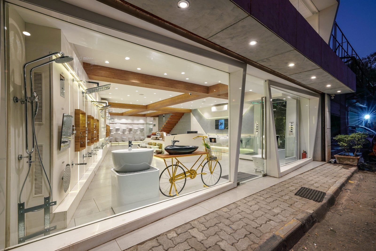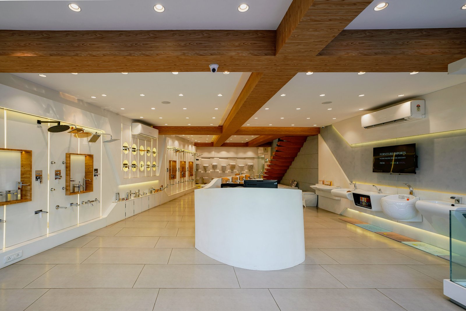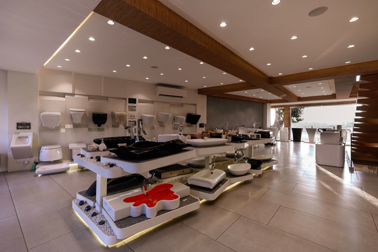 Designed across 2,400 sq ft of carpet area, the showroom adopts a sleek modern style, with clean lines, controlled lighting, and spatial zoning that ensures every product is displayed with clarity and intent. The material palette is refined — featuring monochromatic tones, matte textures, and subtle reflective surfaces that elevate the product narratives. The layout is crafted to simulate real-life bathroom environments, allowing visitors to experience the design possibilities in context. Ambient lighting, niche partitions, and smooth circulation reinforce the brand’s premium positioning. This showroom isn’t just a space — it’s a sensorial journey into design-led living.